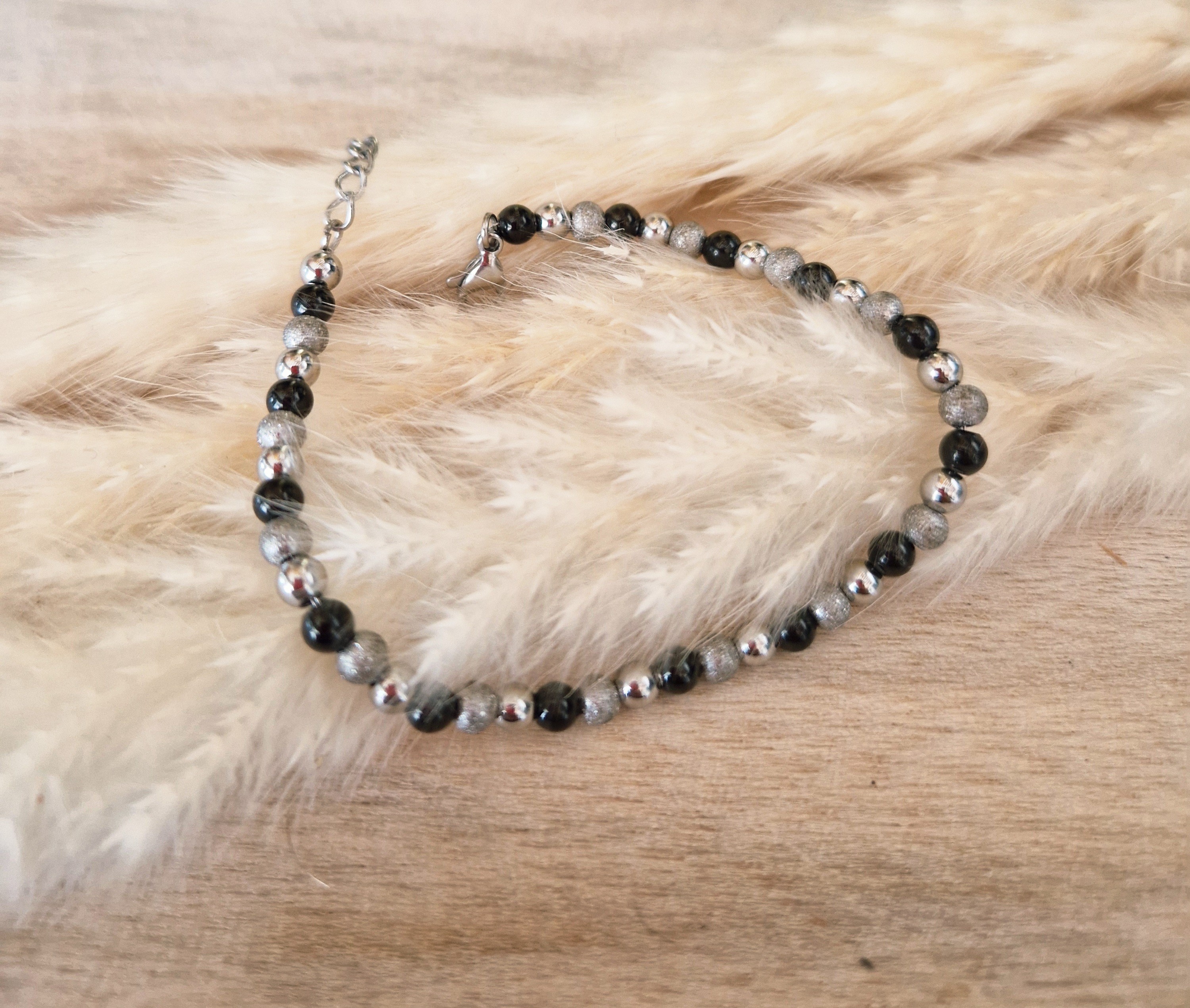 bracelet ajustable perle acier inoxydable avec une chaine d'extension de 5cm ,