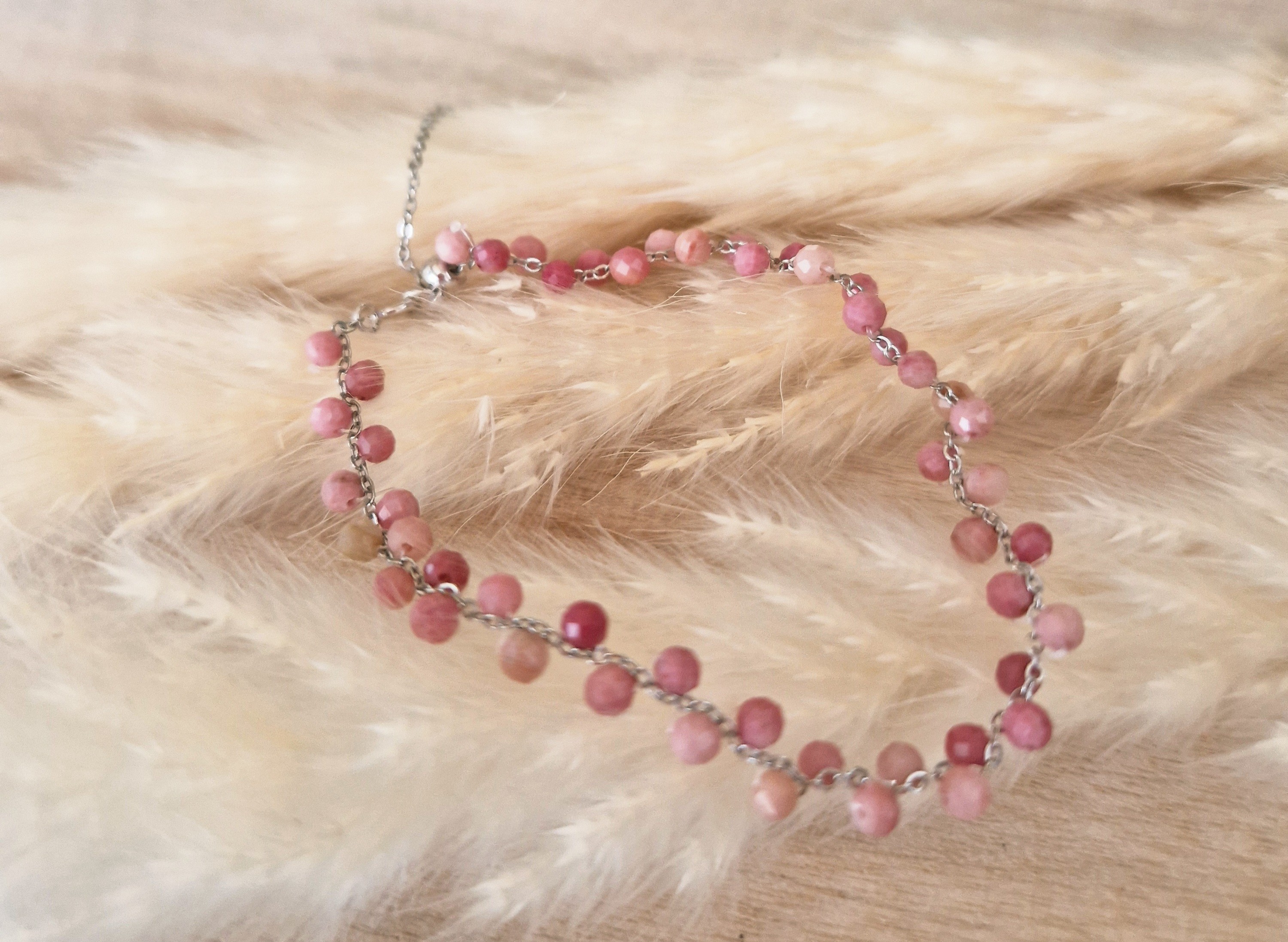bracelet perle Louna perlé rose acier inoxydable argenté