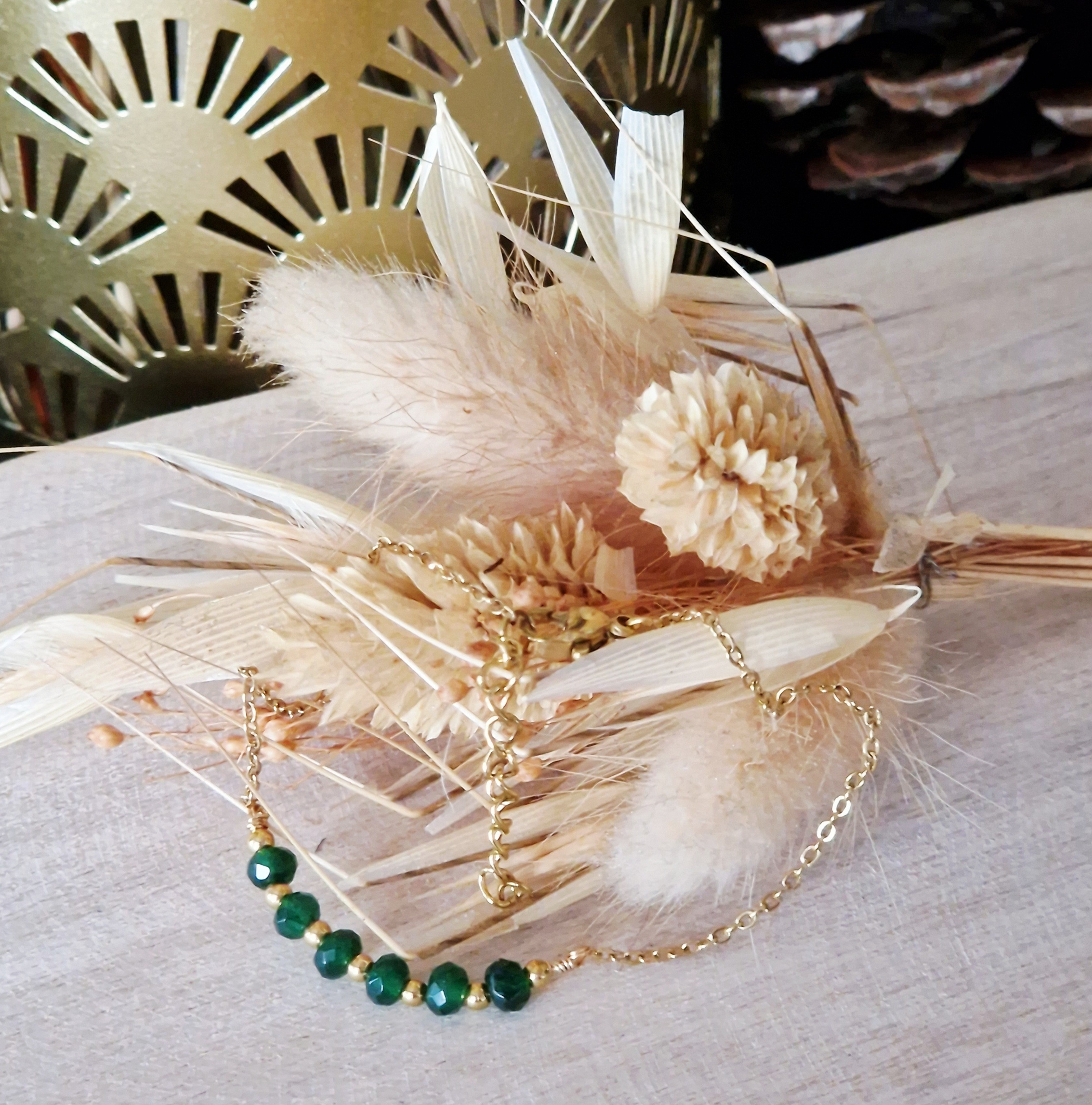 bracelet perle Luna perlé verte acier inoxydable doré