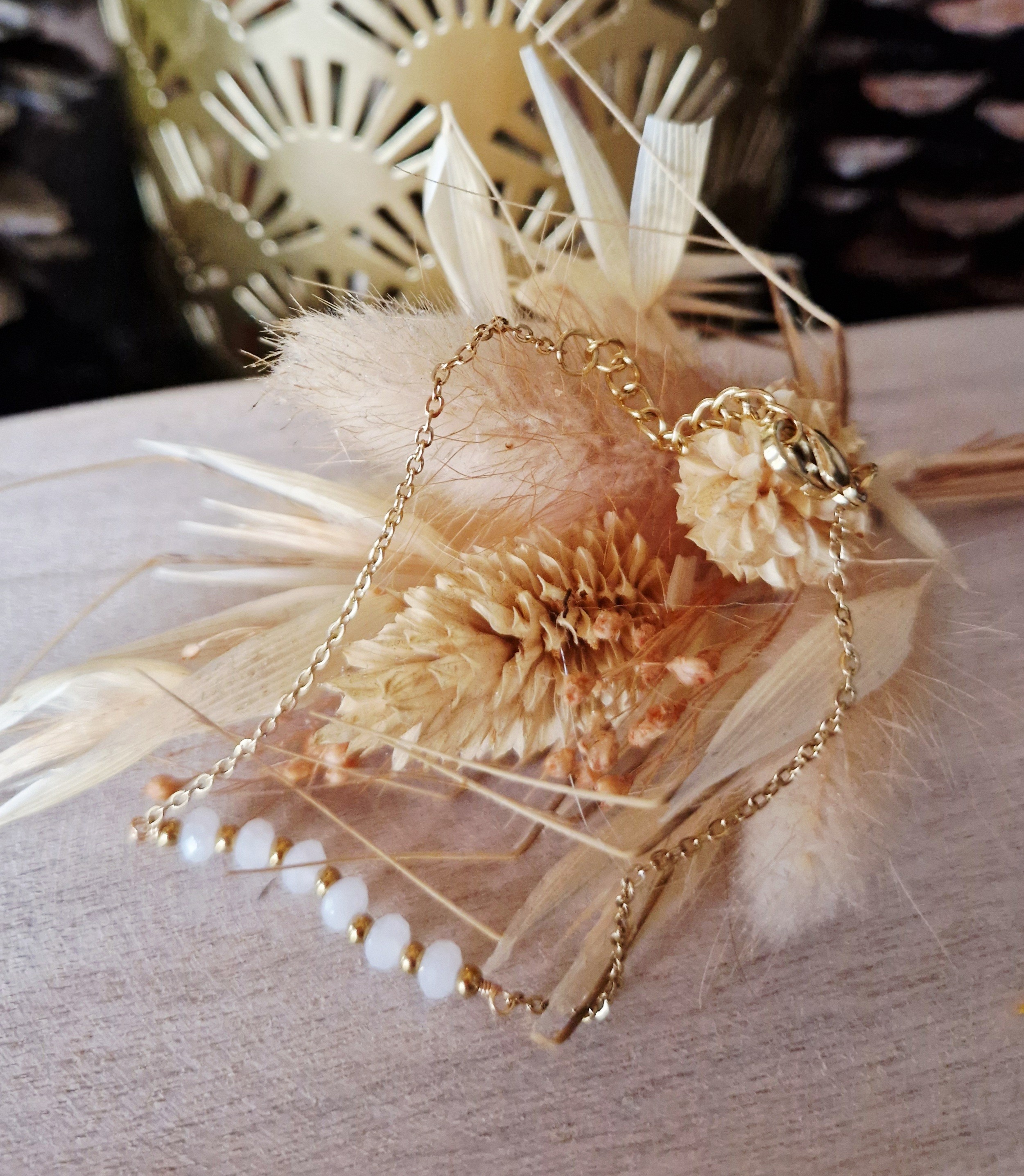 bracelet perle Luna perlé blanc acier inoxydable doré