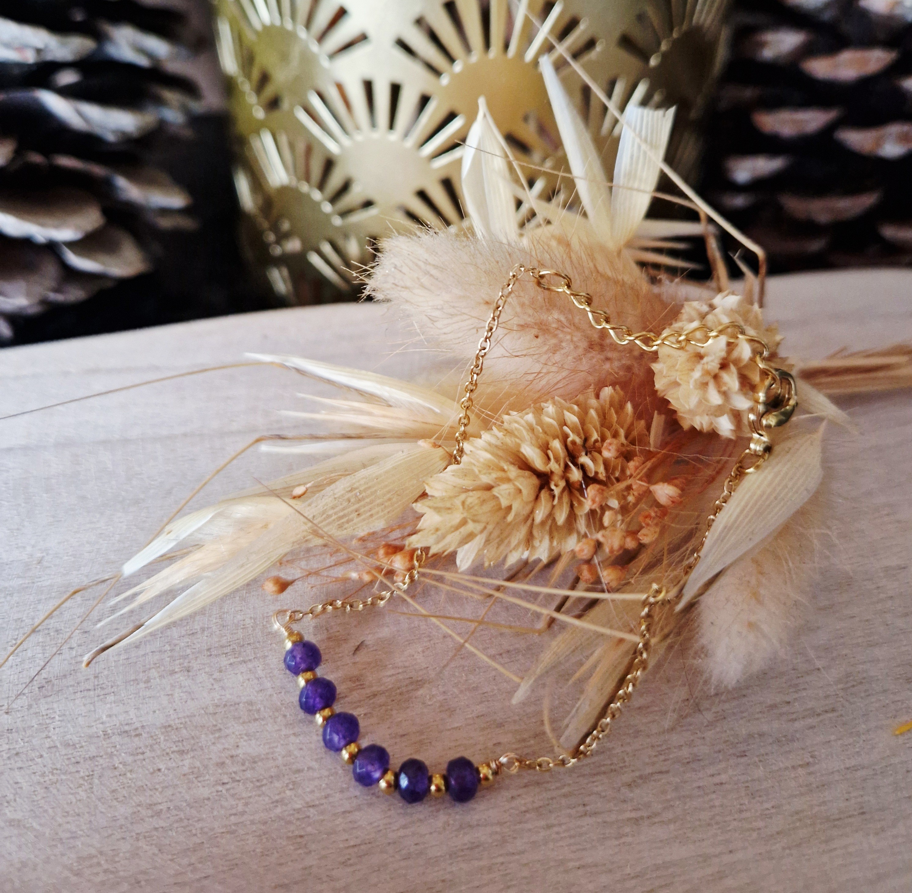 bracelet perle Luna perlé bleu acier inoxydable doré