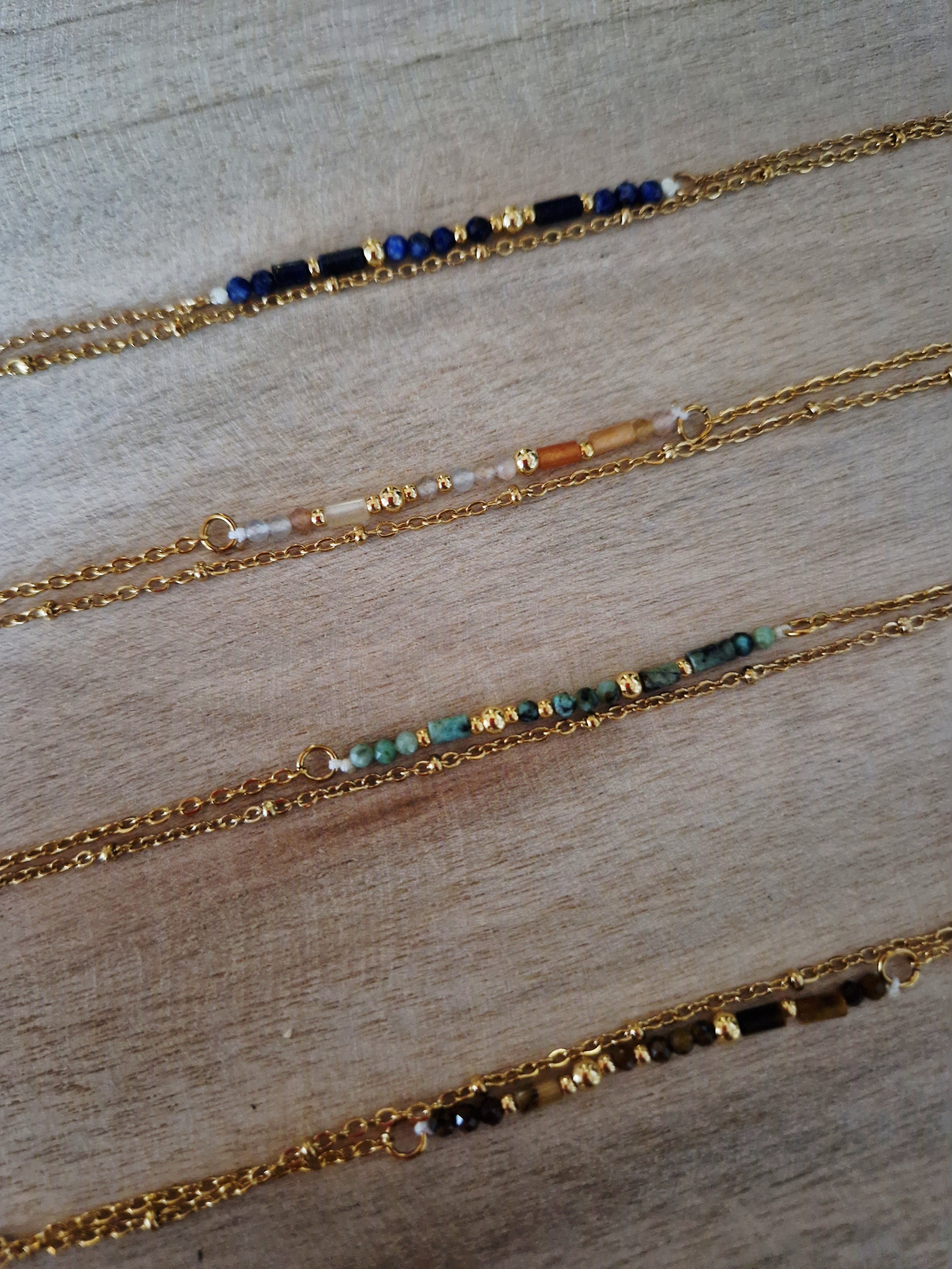 bracelet ajustable perle acier inoxydable avec une chaine d'extension de 5cm ,