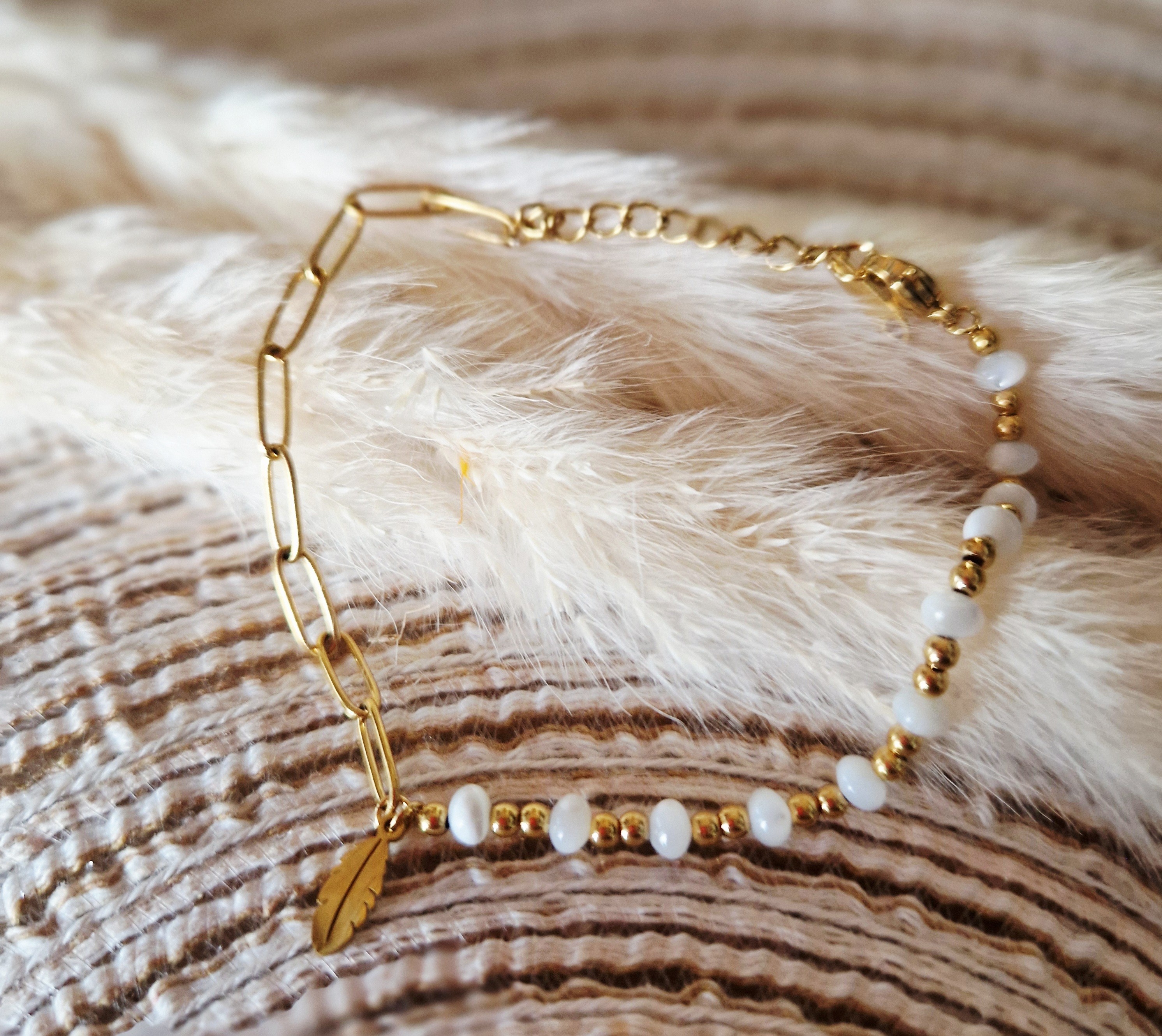 bracelet ajustable perle acier inoxydable avec une chaine d'extension de 5cm ,