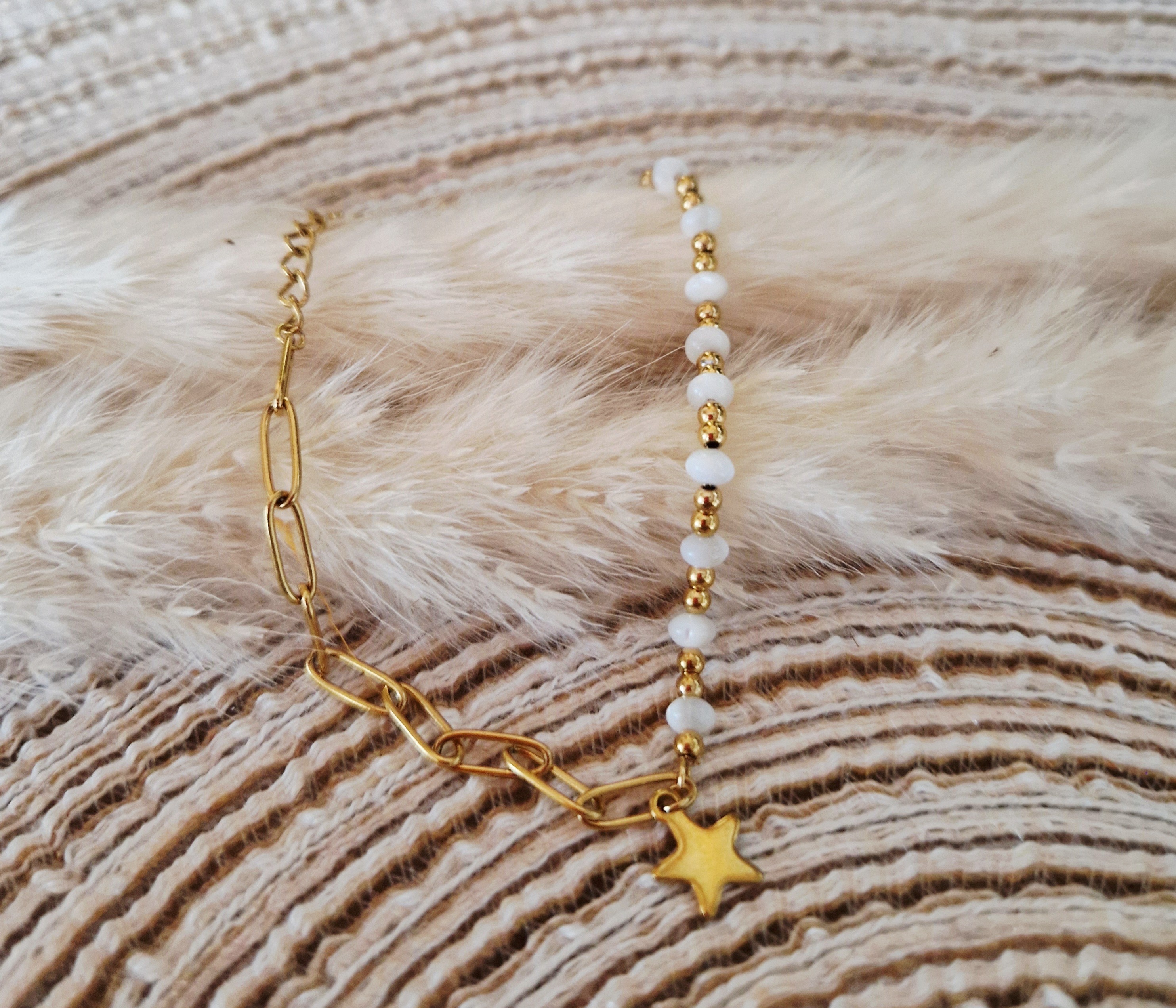 bracelet ajustable perle acier inoxydable avec une chaine d'extension de 5cm ,