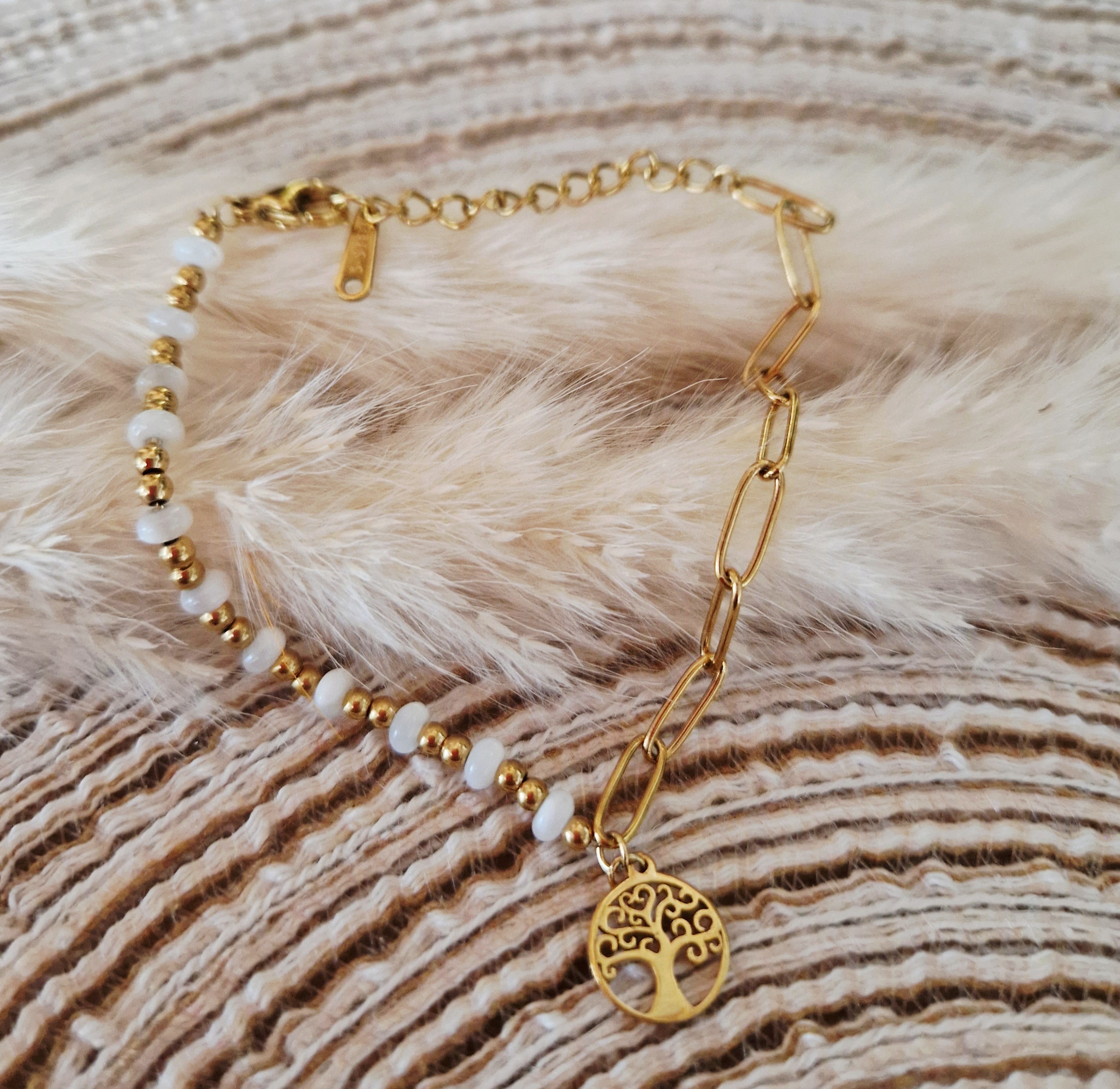 bracelet perlé arbre blanche acier inoxydable doré