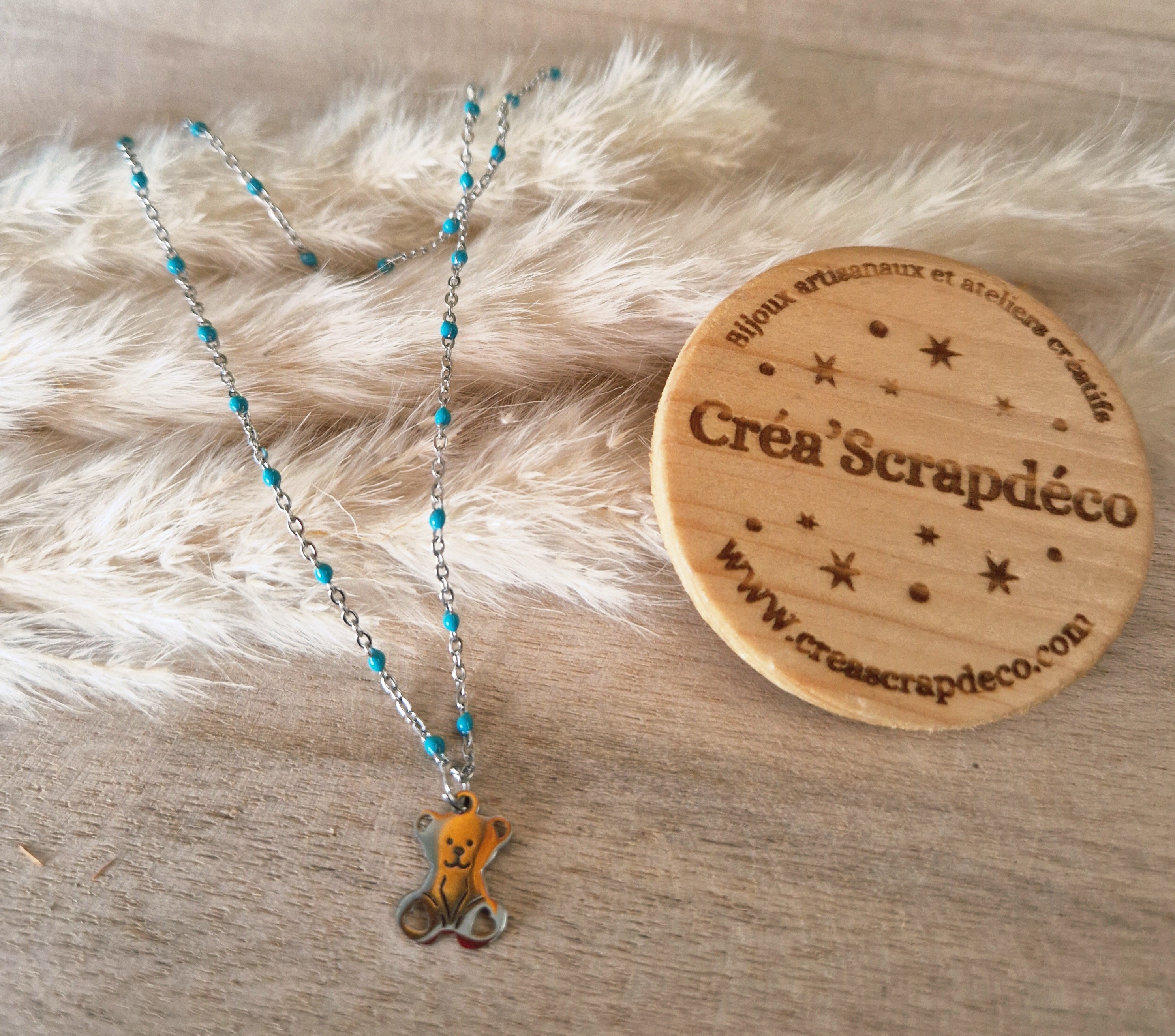 Collier en chaine perlé en acier inoydable de 40cm et 5 cm de rallonge