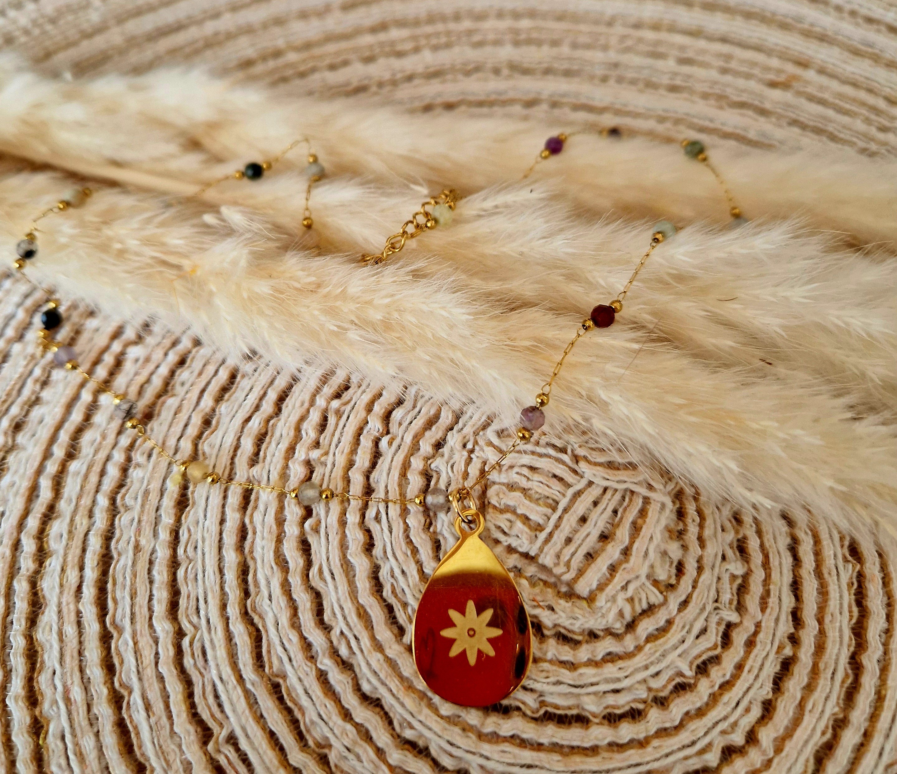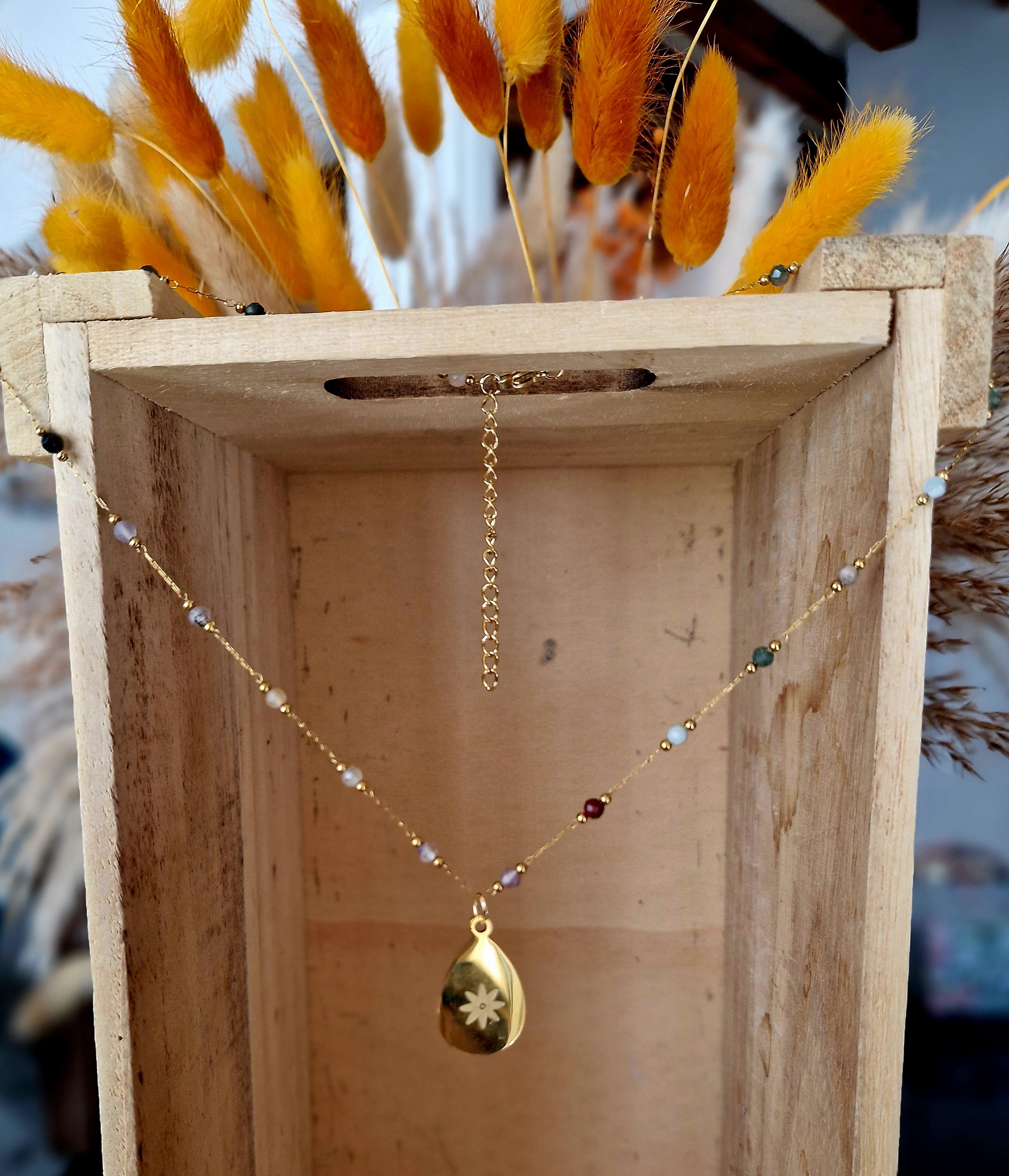 Collier en chaine perlé en acier inoydable de 40cm et 5 cm de rallonge