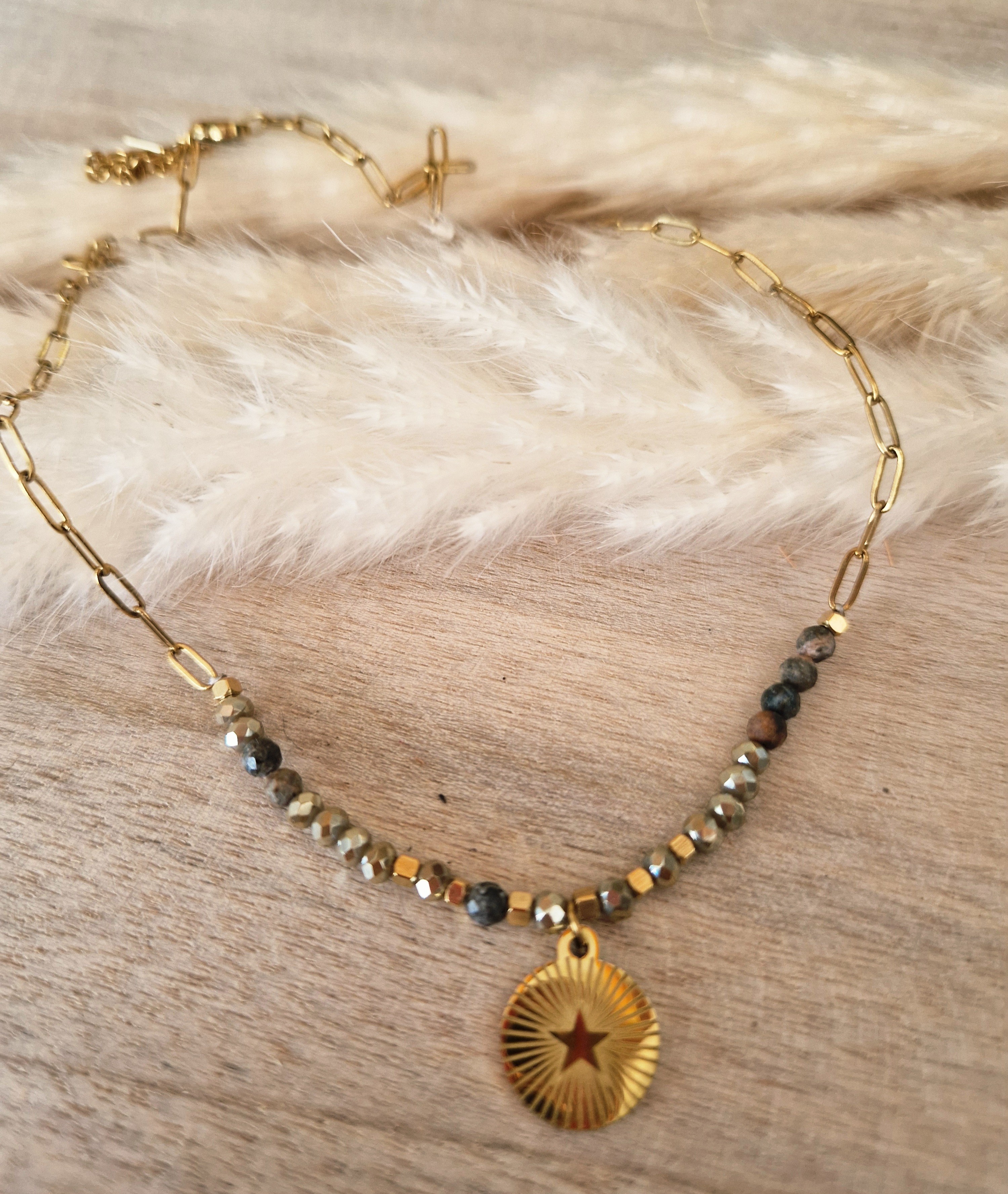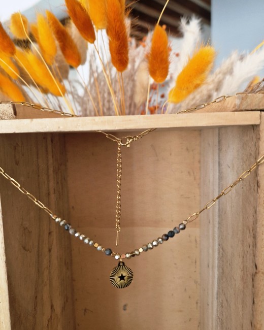 Collier en chaine perlé en acier inoydable de 40cm et 5 cm de rallonge