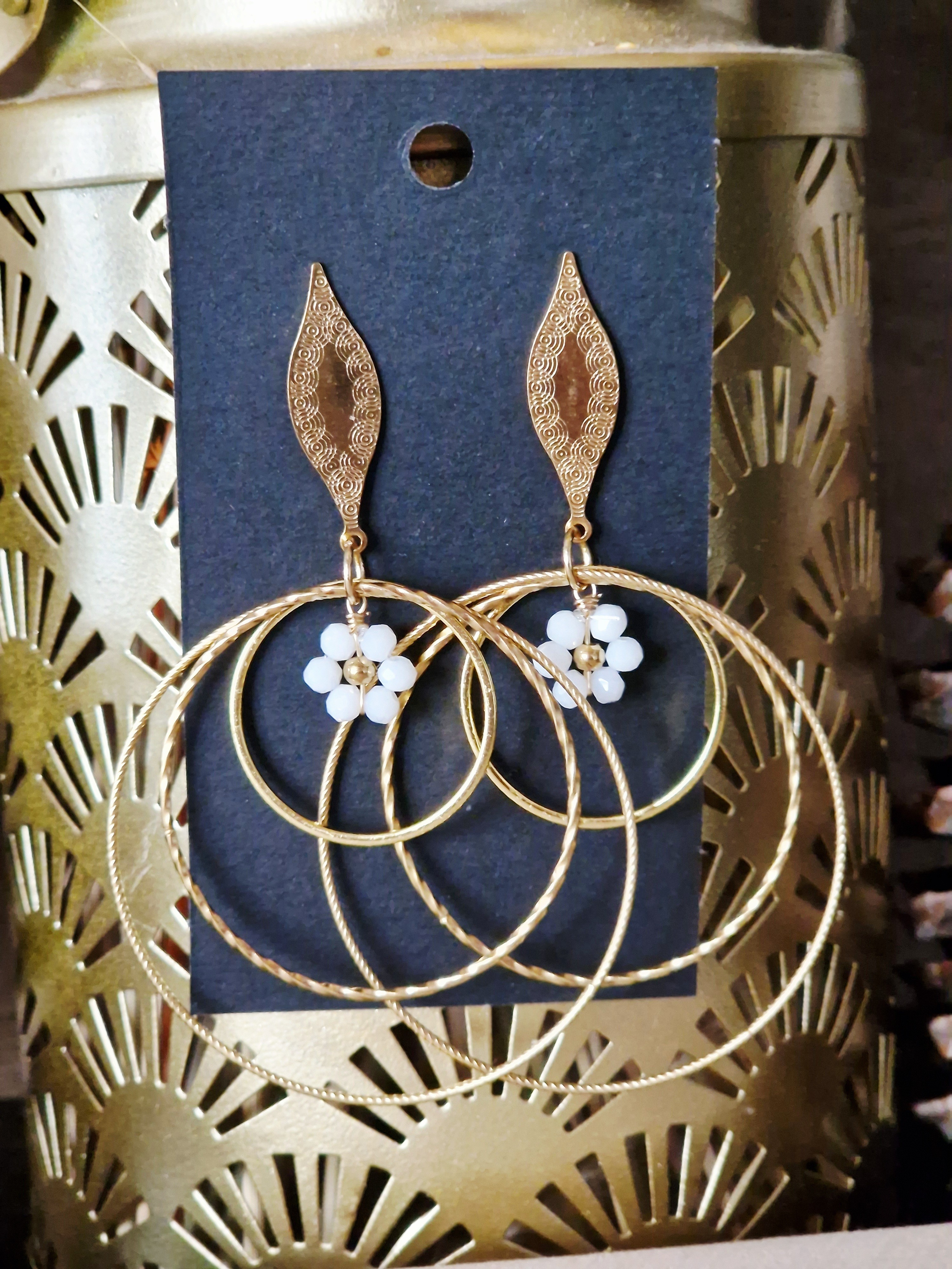 Boucles d'oreilles Lilou fleur blanche version doré
