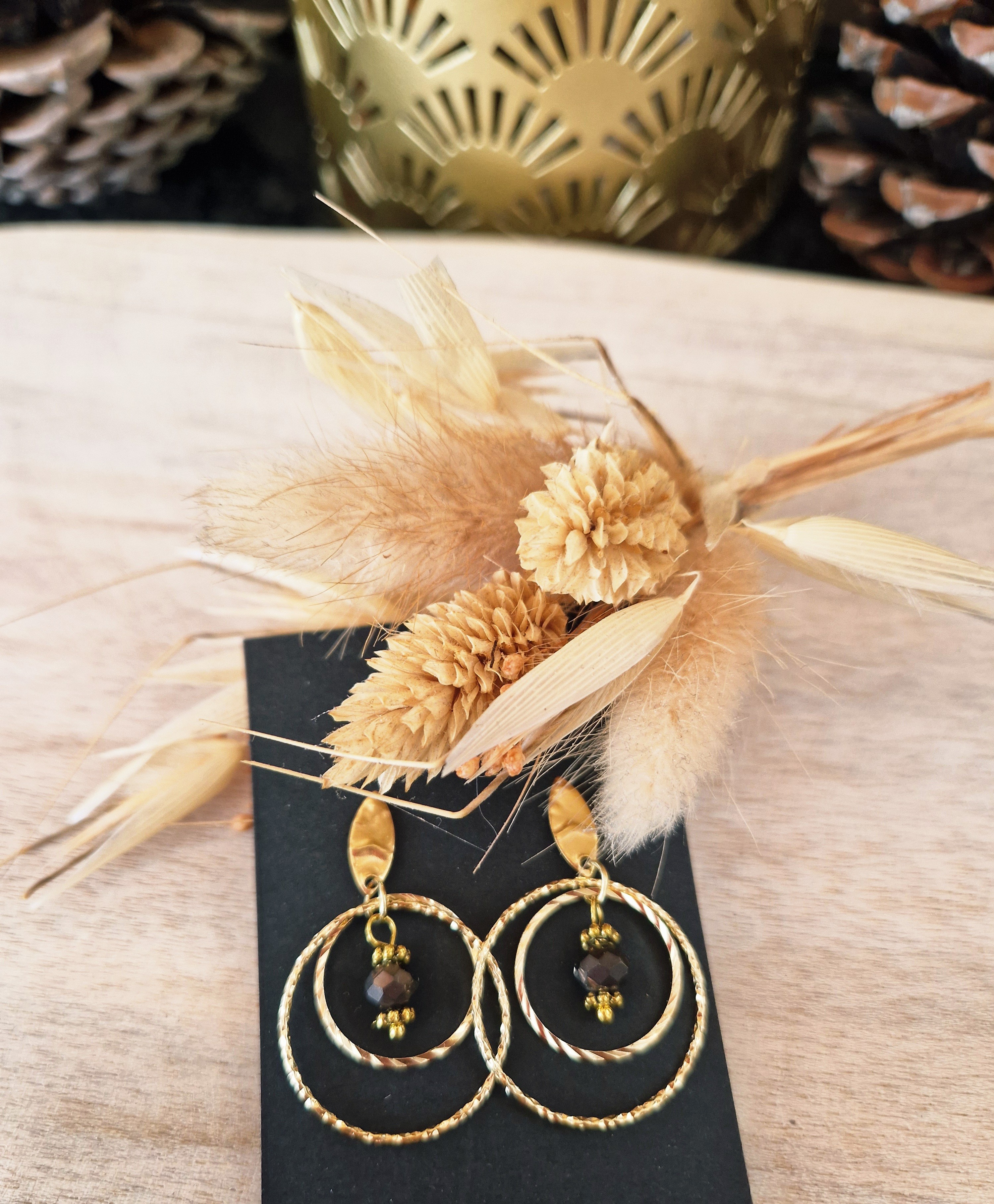 Boucles d'oreilles Lila gris foncé métal perle version doré