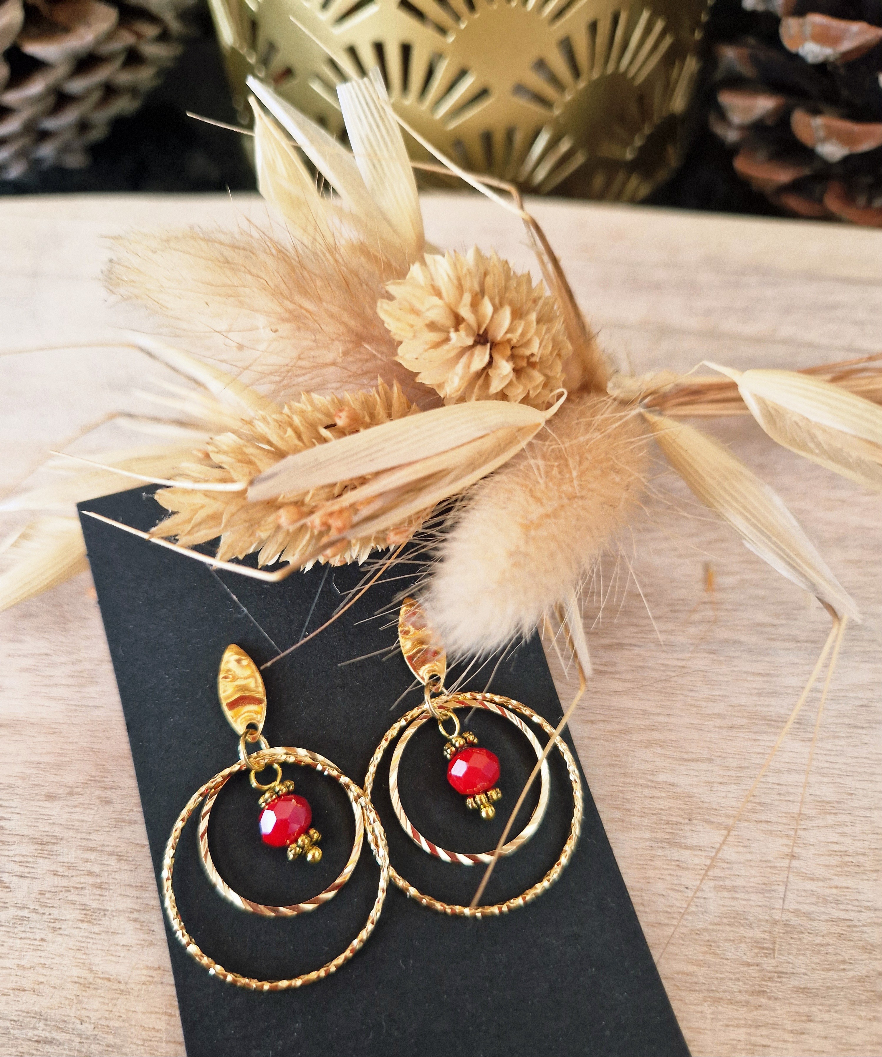 Boucles d'oreilles en acier inoxydable  breloque perle en verre.