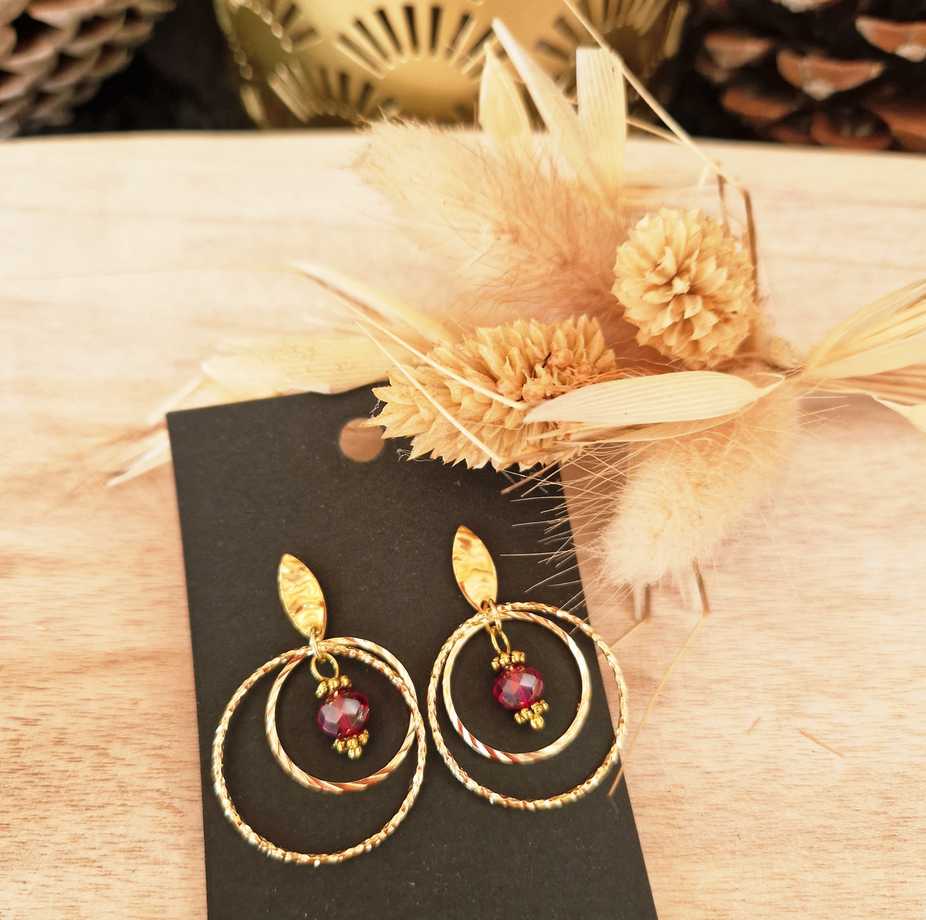 Boucles d'oreilles en acier inoxydable  breloque perle en verre.