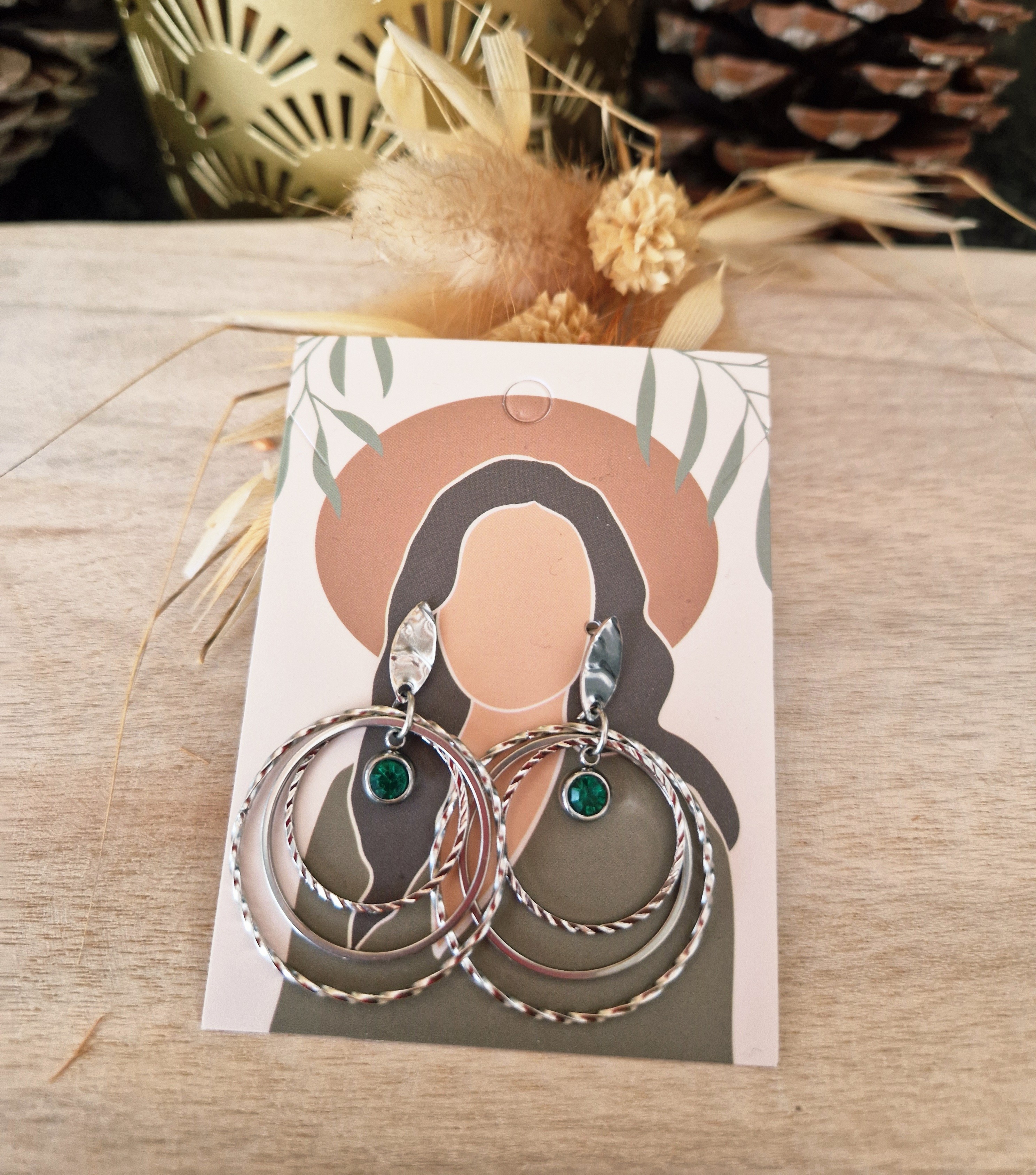 Boucles d'oreilles en acier inoxydable  breloque perle en verre.
