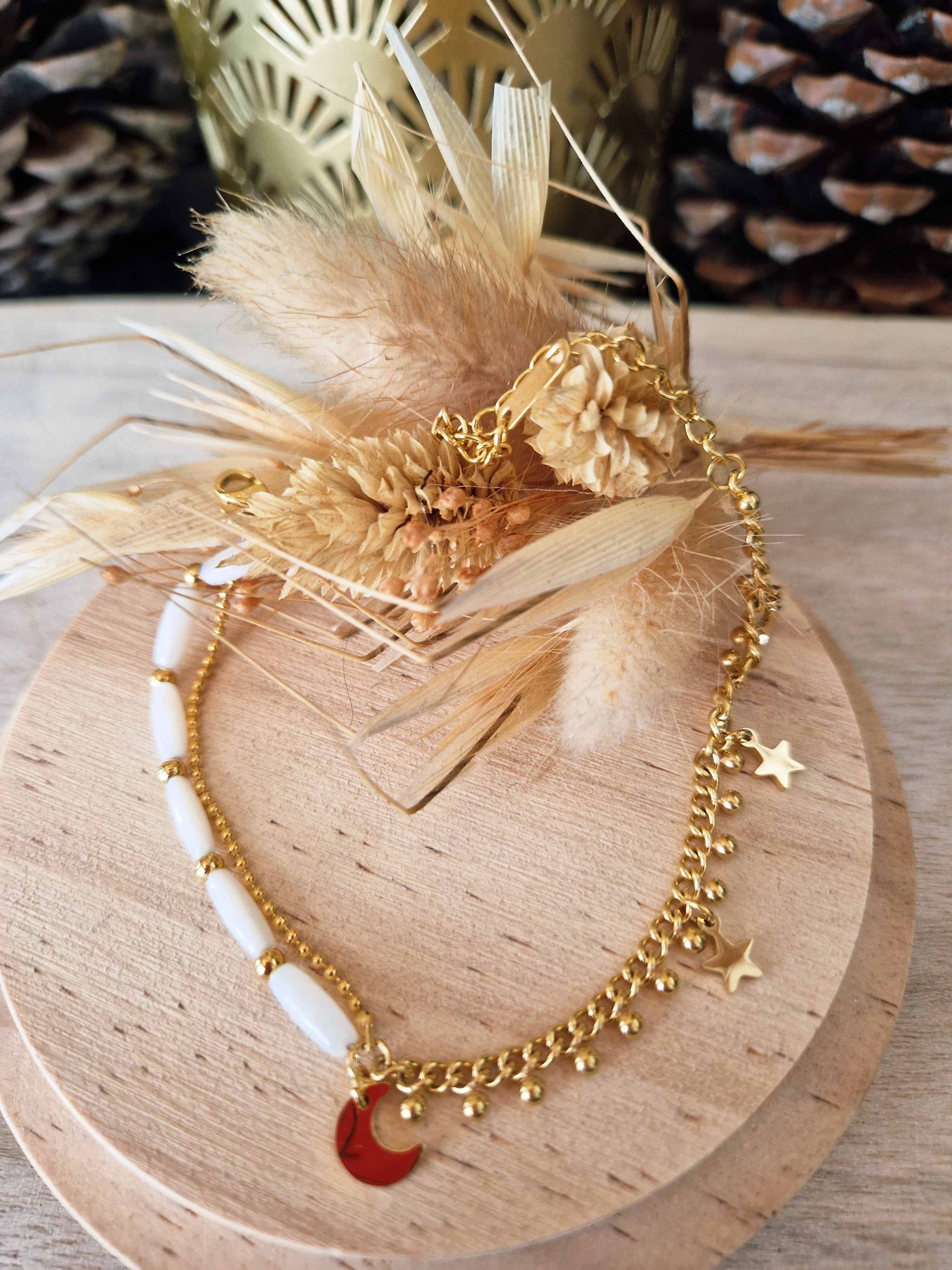 bracelet ajustable perle acier inoxydable avec une chaine d'extension de 5cm ,
