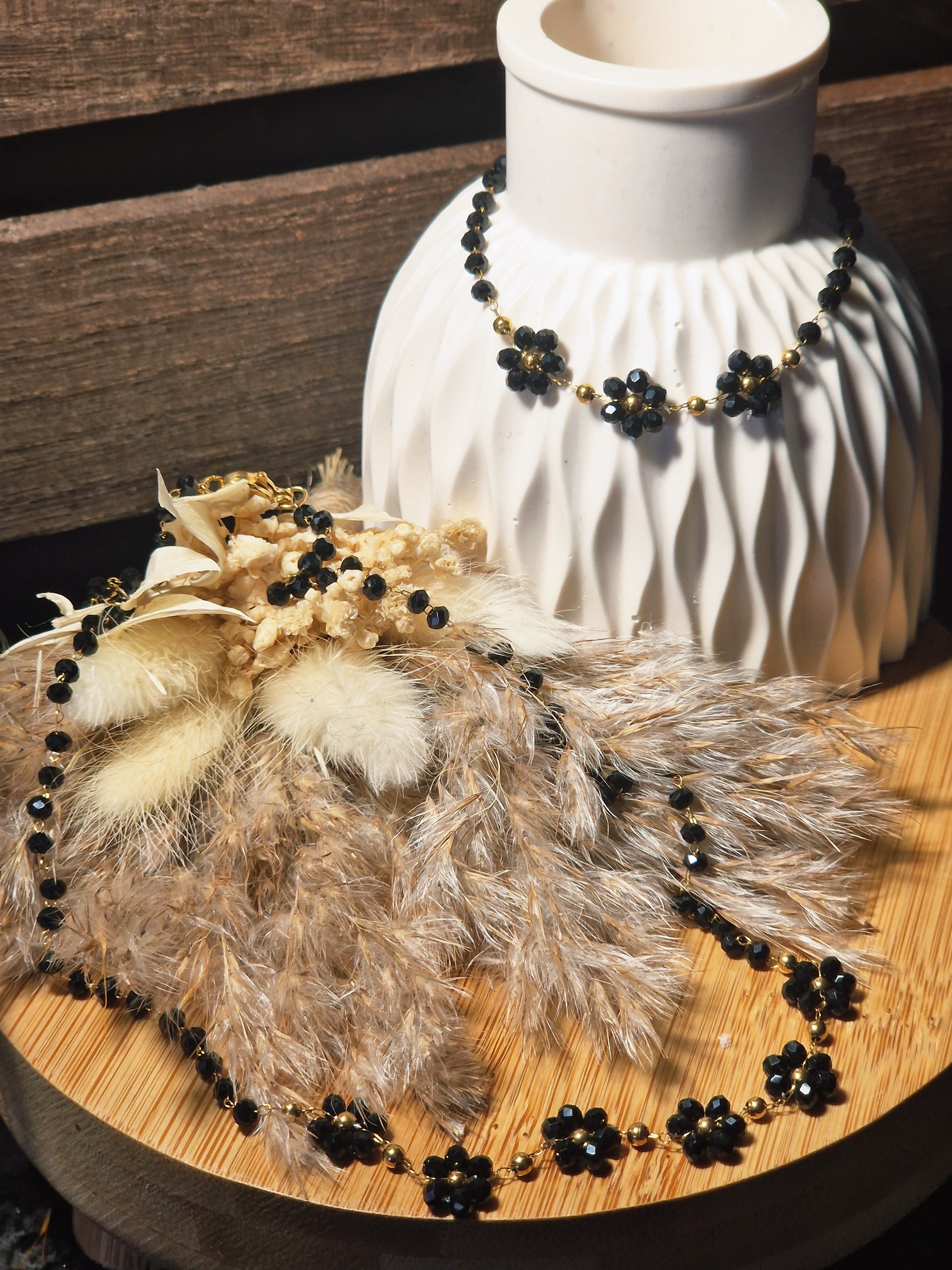 Collier en chaine perlé en acier inoydable de 40cm et 5 cm de rallonge