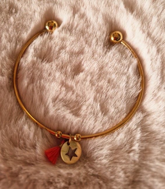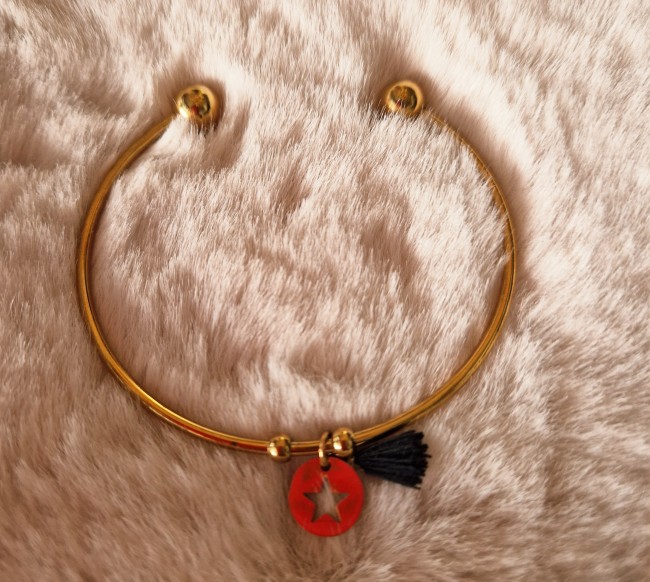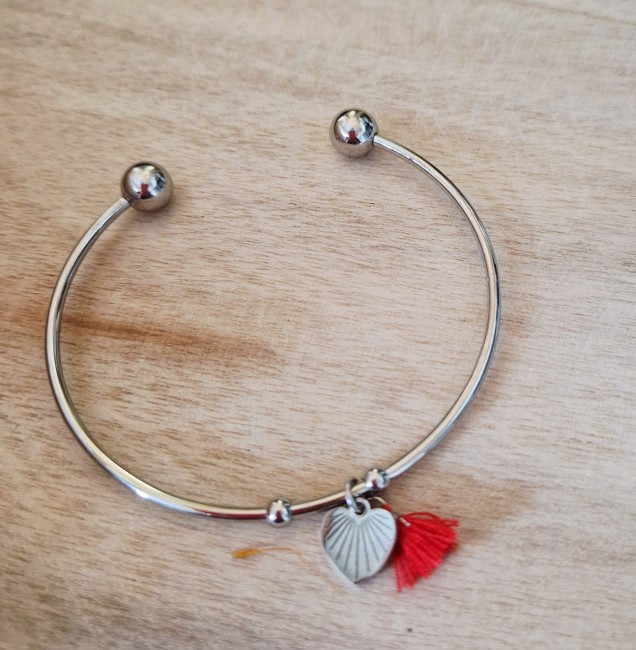 bracelet Jonc cœur jrouge acier inoxydable argenté