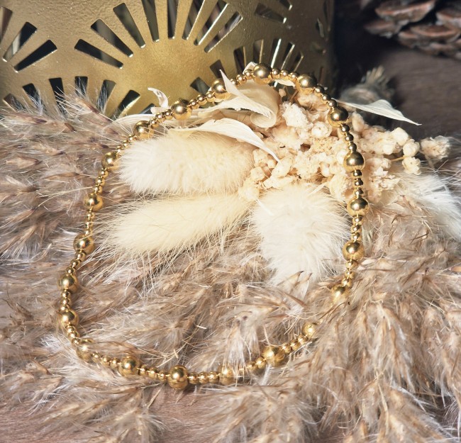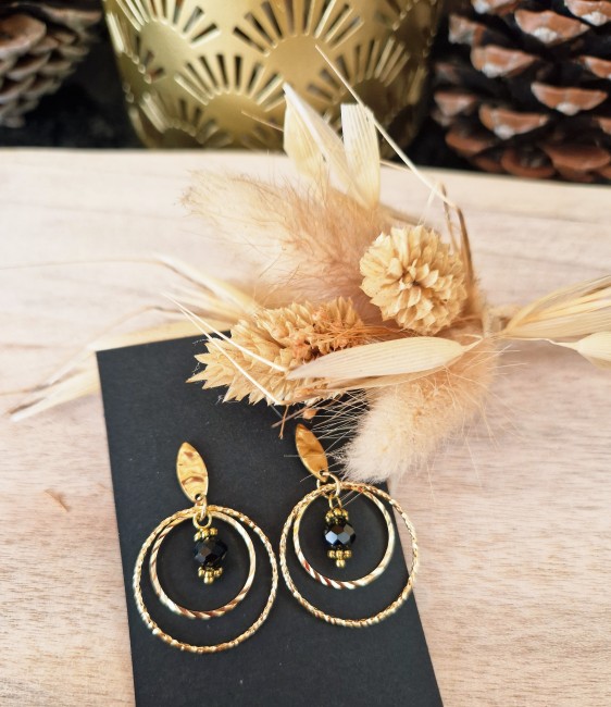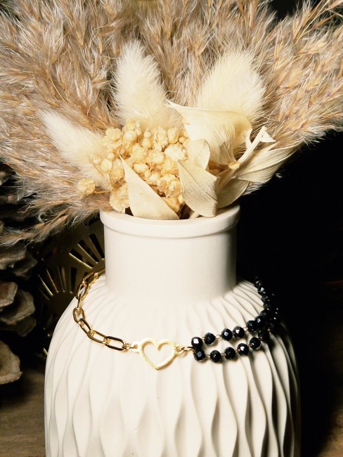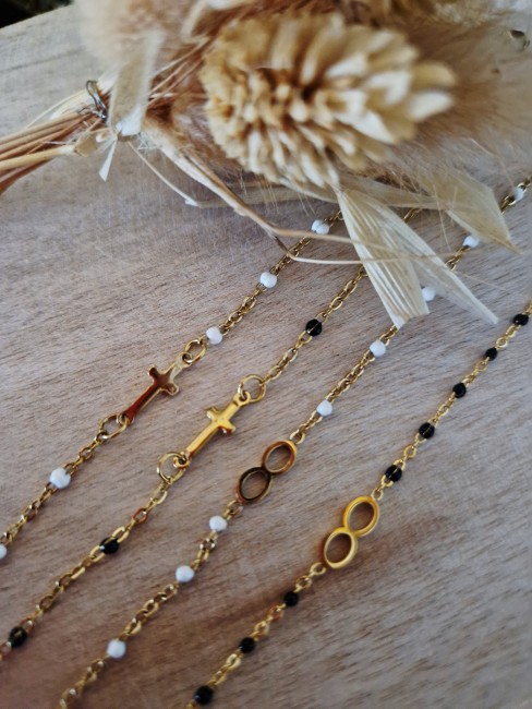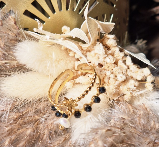 bracelet double perle noir ALuna perlé acier inoxydable doré