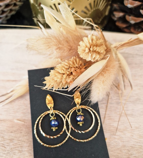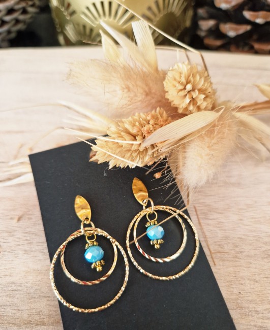 bracelet perle Luna perlé bleu acier inoxydable doré