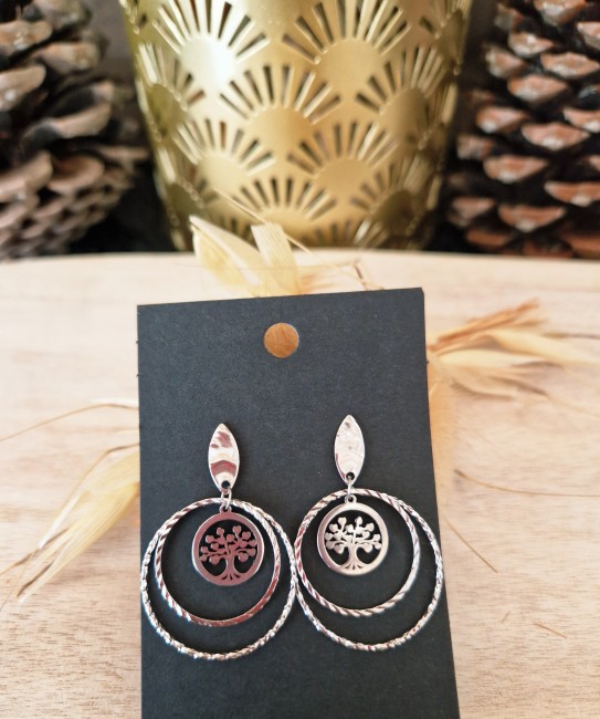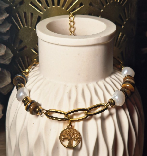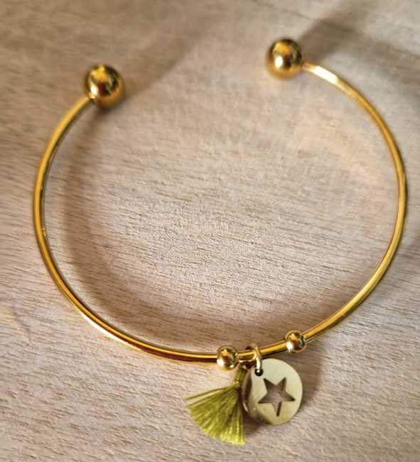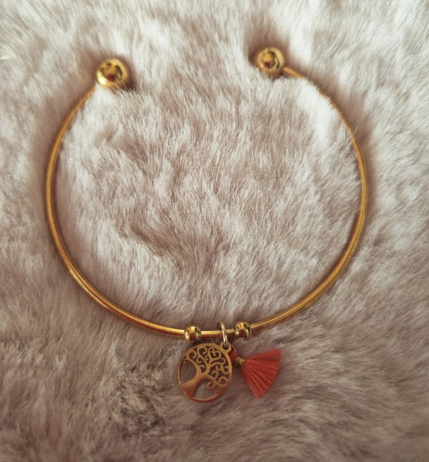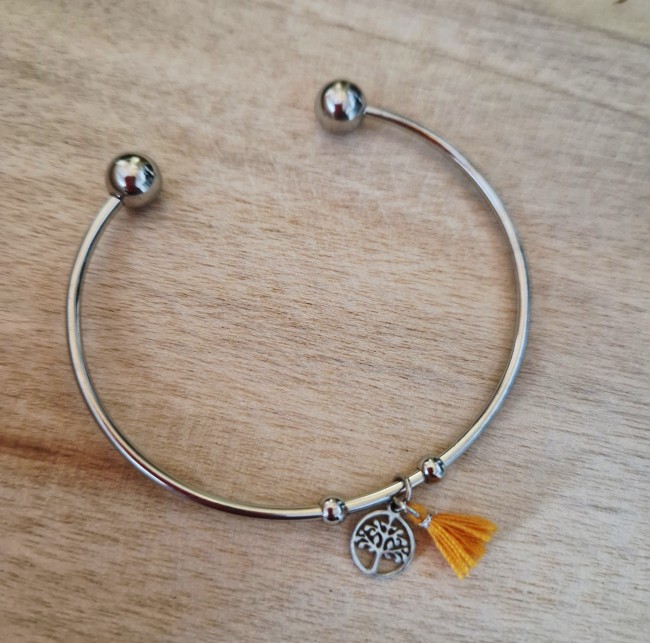 bracelet Jonc arbre de vie jaune acier inoxydable argenté