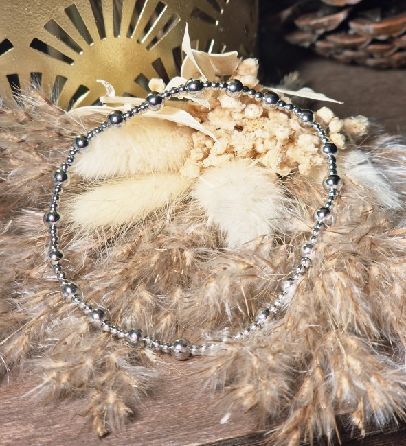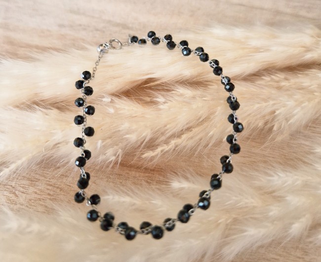 bracelet perle Louna perlé noir acier inoxydable argenté
