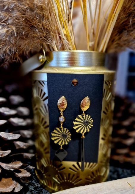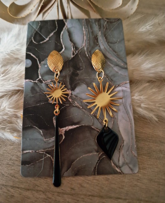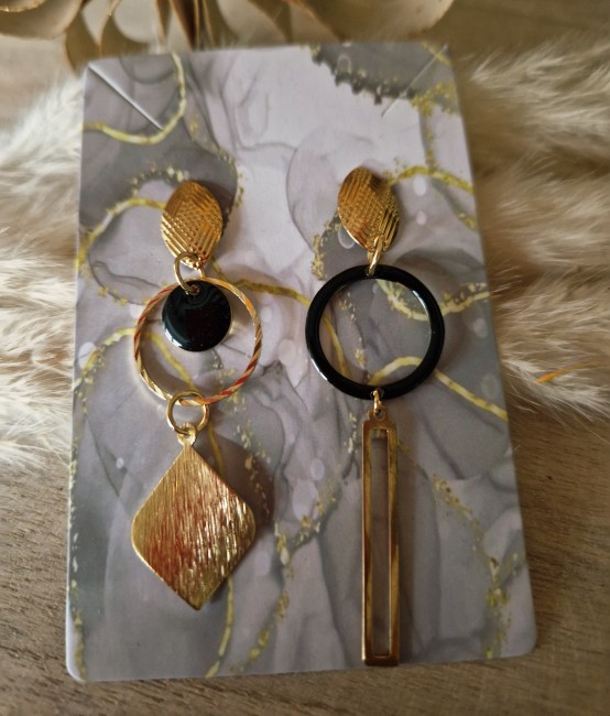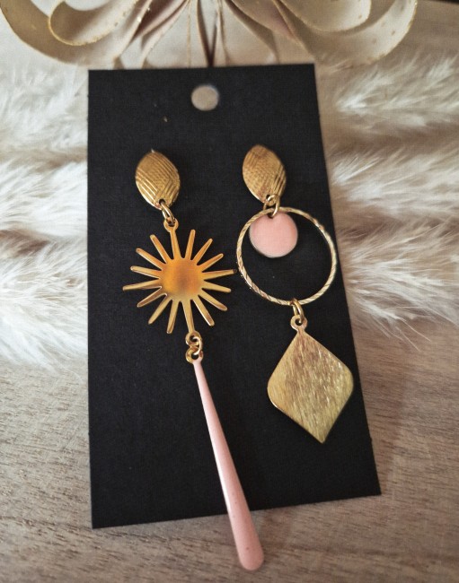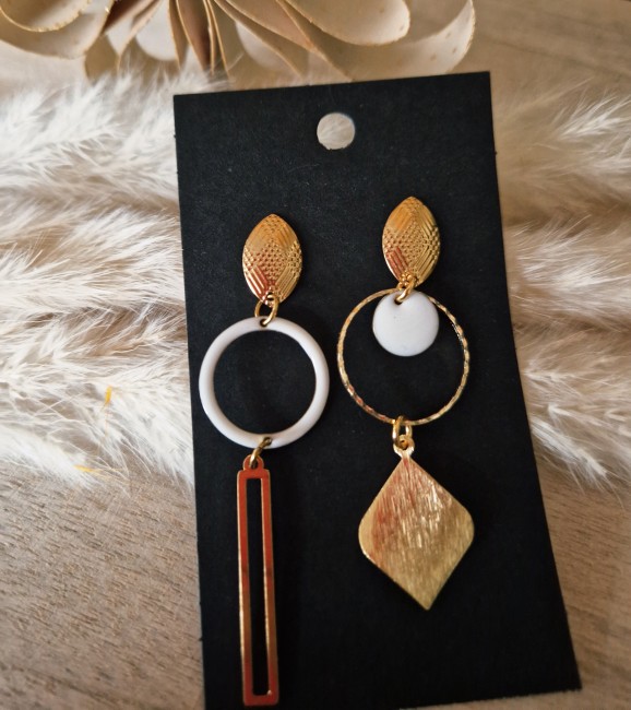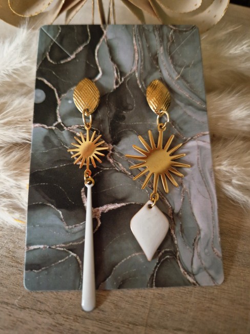 Boucles d'oreilles sunset blanche dépareillée version doré