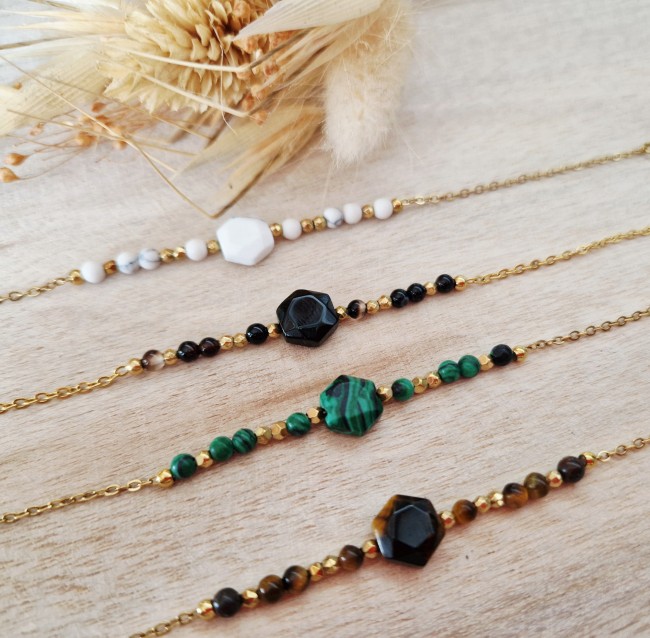 bracelet élastique Mia perle céramique acier inoxydable doré