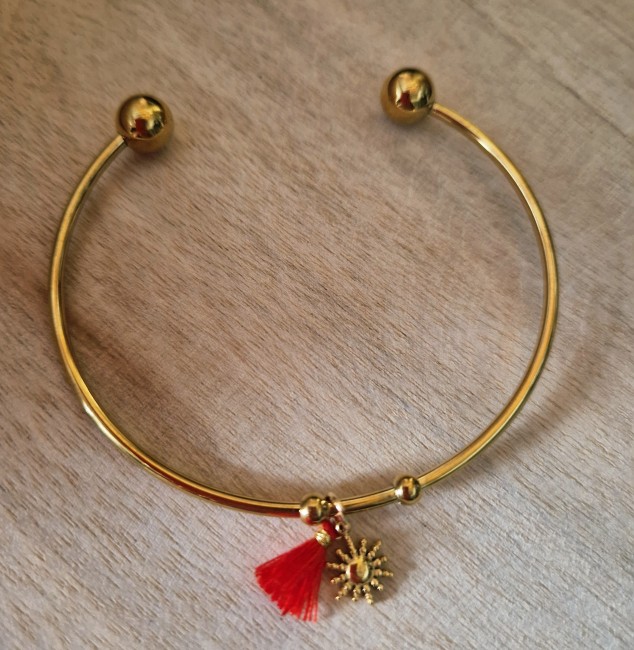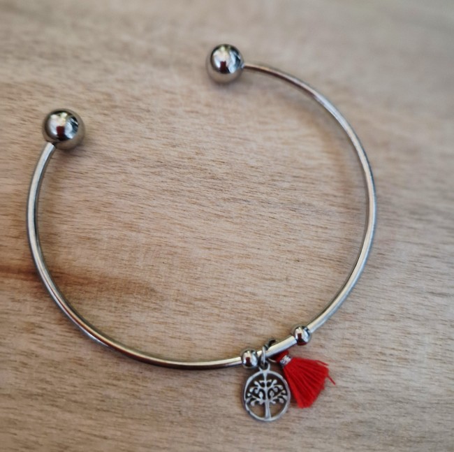 bracelet Jonc arbre de vie rouge acier inoxydable argenté