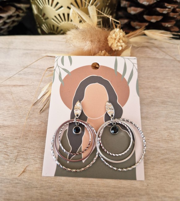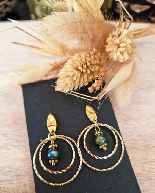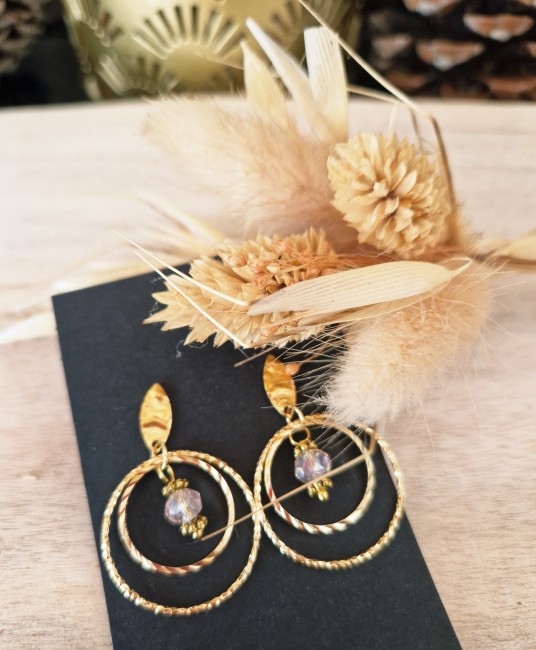Boucles d'oreilles Lila gris foncé métal perle version doré