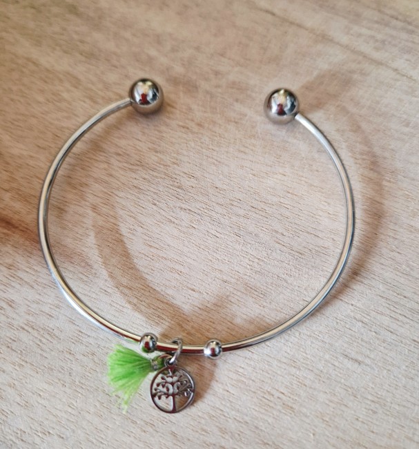 bracelet Jonc arbre de vie vert acier inoxydable argenté