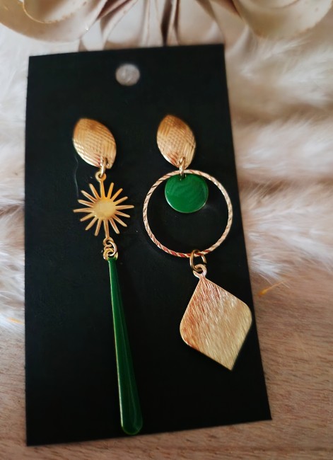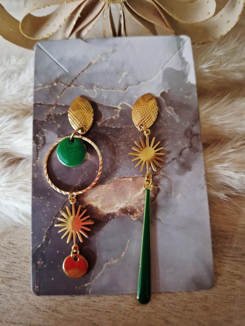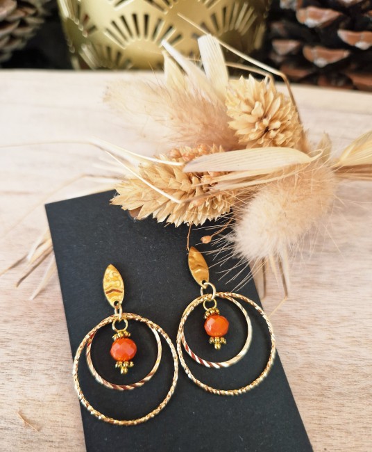 Boucles d'oreilles sunset rouge dépareillée version doré