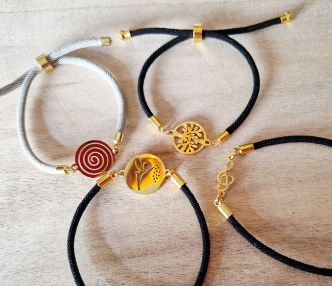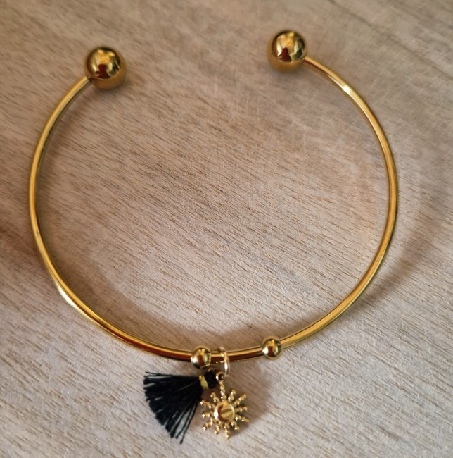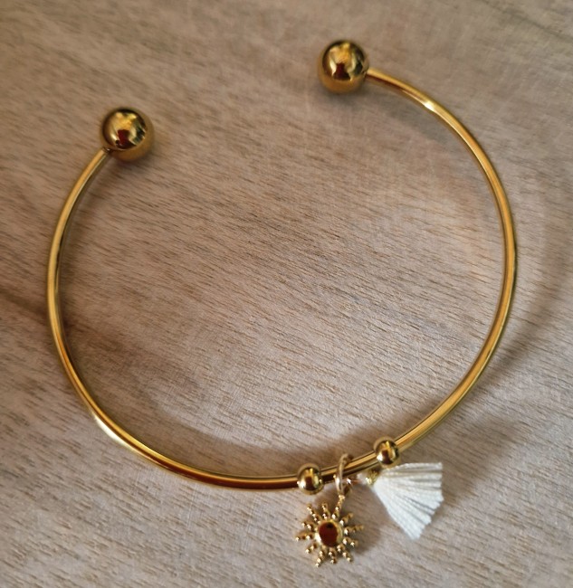 bracelet Jonc fleur de vie jaune acier inoxydable argenté