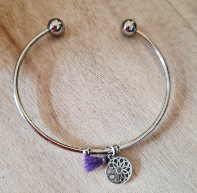 bracelet Jonc fleur de vie violet acier inoxydable argenté