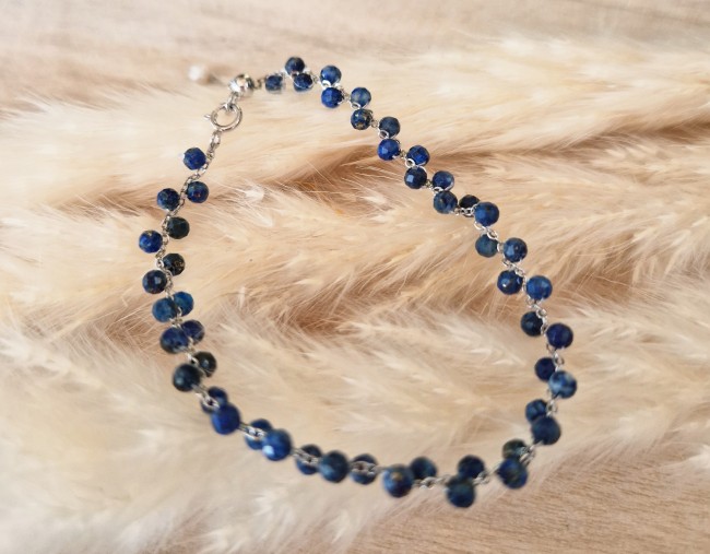 bracelet perle Louna perlé bleu marine acier inoxydable argenté