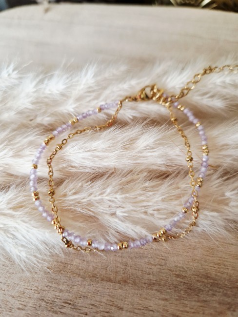 bracelet double perle ALuna perlé violet acier inoxydable doré
