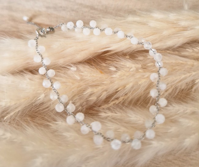 bracelet perle Louna perlé blanc acier inoxydable argenté