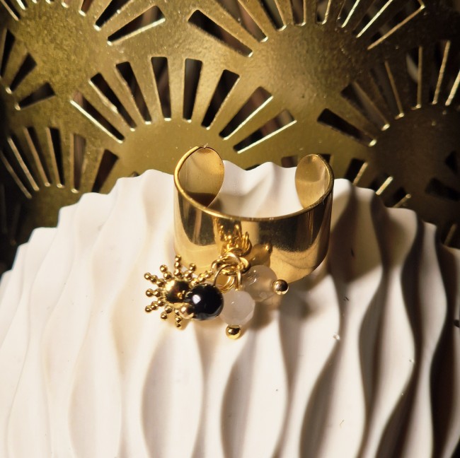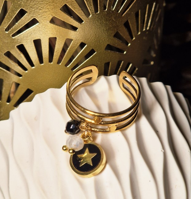 Bague large acier inoxydable étoile nacré perlé doré noir