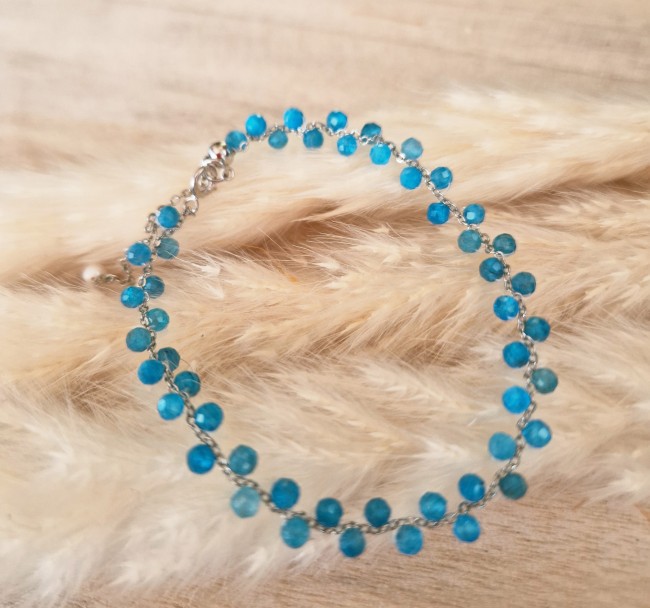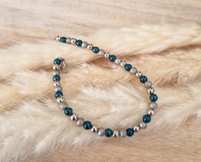 bracelet perle Louna perlé turquoise acier inoxydable argenté