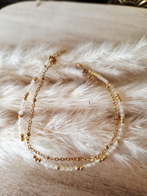 bracelet double perle ALuna perlé blanche acier inoxydable doré