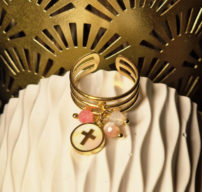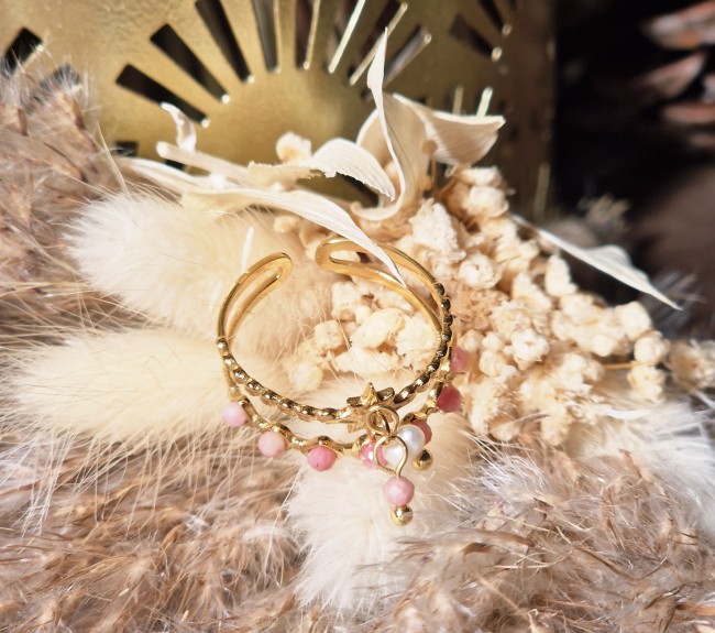 Bague large acier inoxydable étoile nacré perlé doré rose
