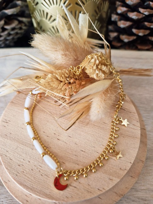 bracelet perle Luna perlé blanc acier inoxydable doré