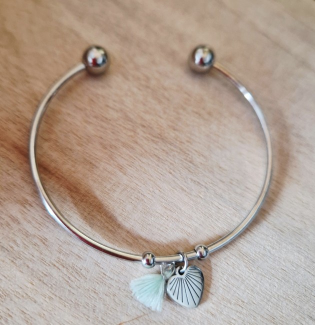 bracelet Jonc cœur blanc acier inoxydable argenté
