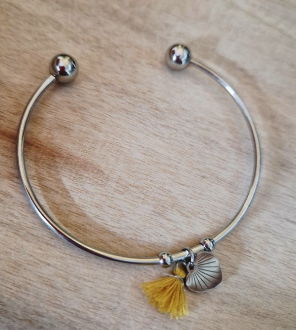 bracelet Jonc cœur jaune acier inoxydable argenté