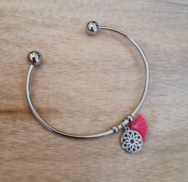 bracelet Jonc fleur de vie rose acier inoxydable argenté